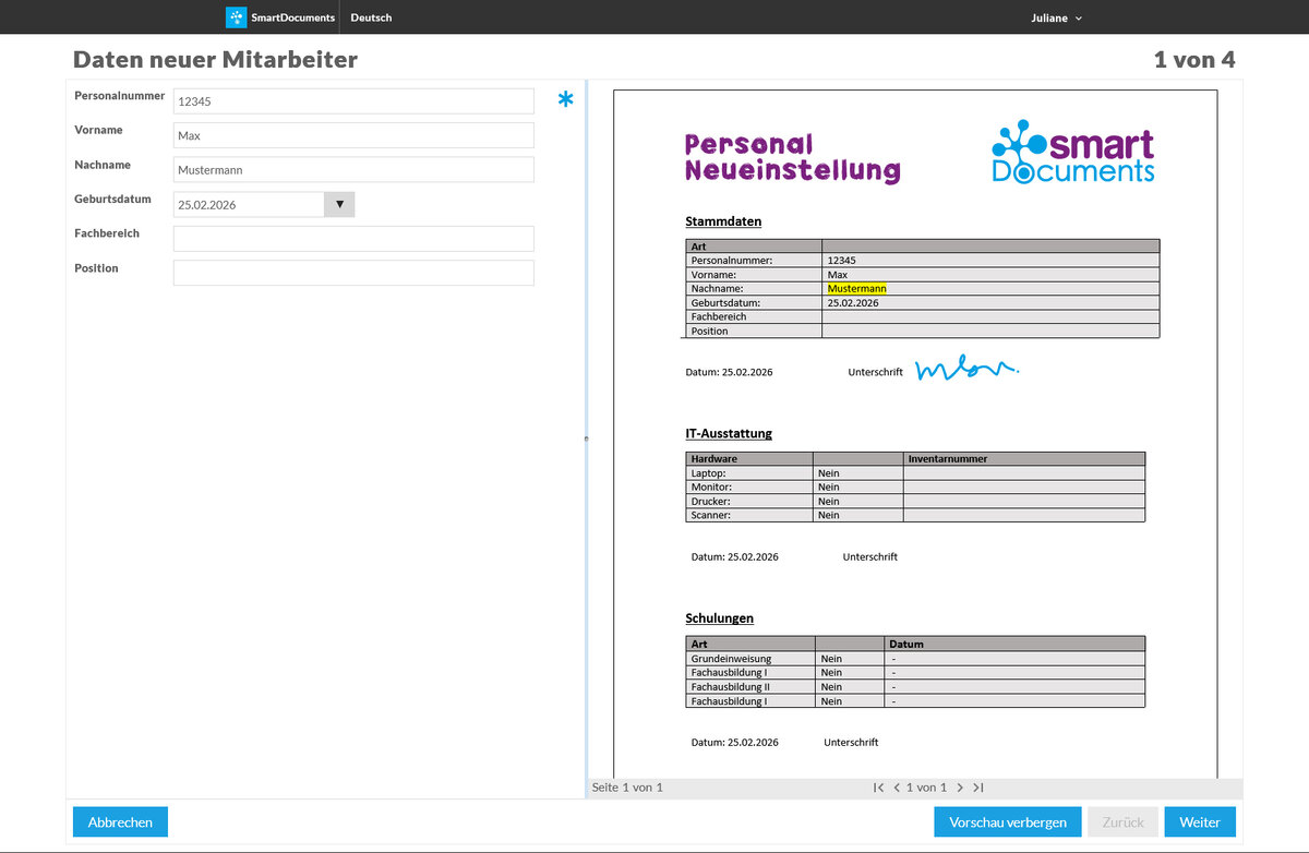 Beispiel: Laufzettel für Personal-Neueinstellungen