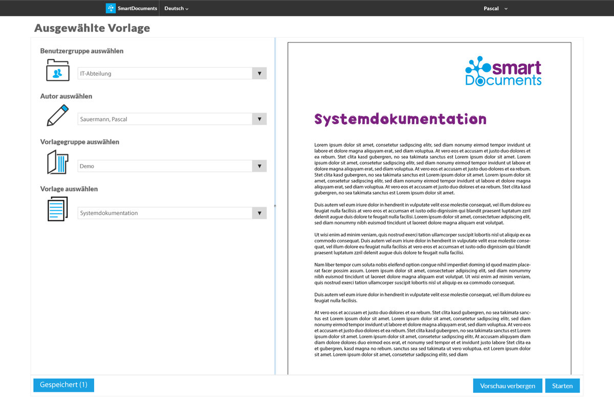 - Startet die Aufgabe in SmartDocuments und beantwortet die ihm zugewiesenen Fragen.
