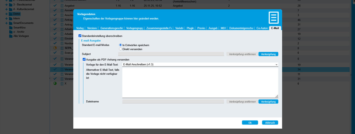 Einstellungen innerhalb SmartDocuments