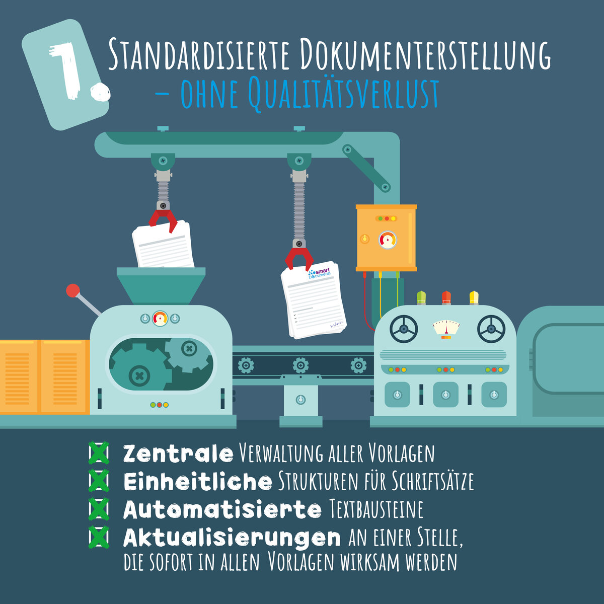 - Vorlagen zentral bündelt und kontrolliert,